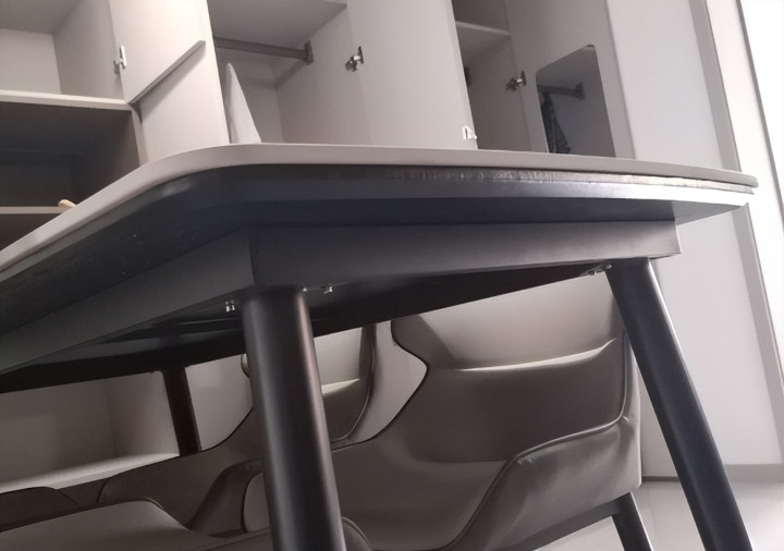 只是大家在选购岩板餐桌时,我们要避开没有“底托”的款式,这种餐桌表面看着没有什么,但随着时间推移,里面的缺点就显现出来了。